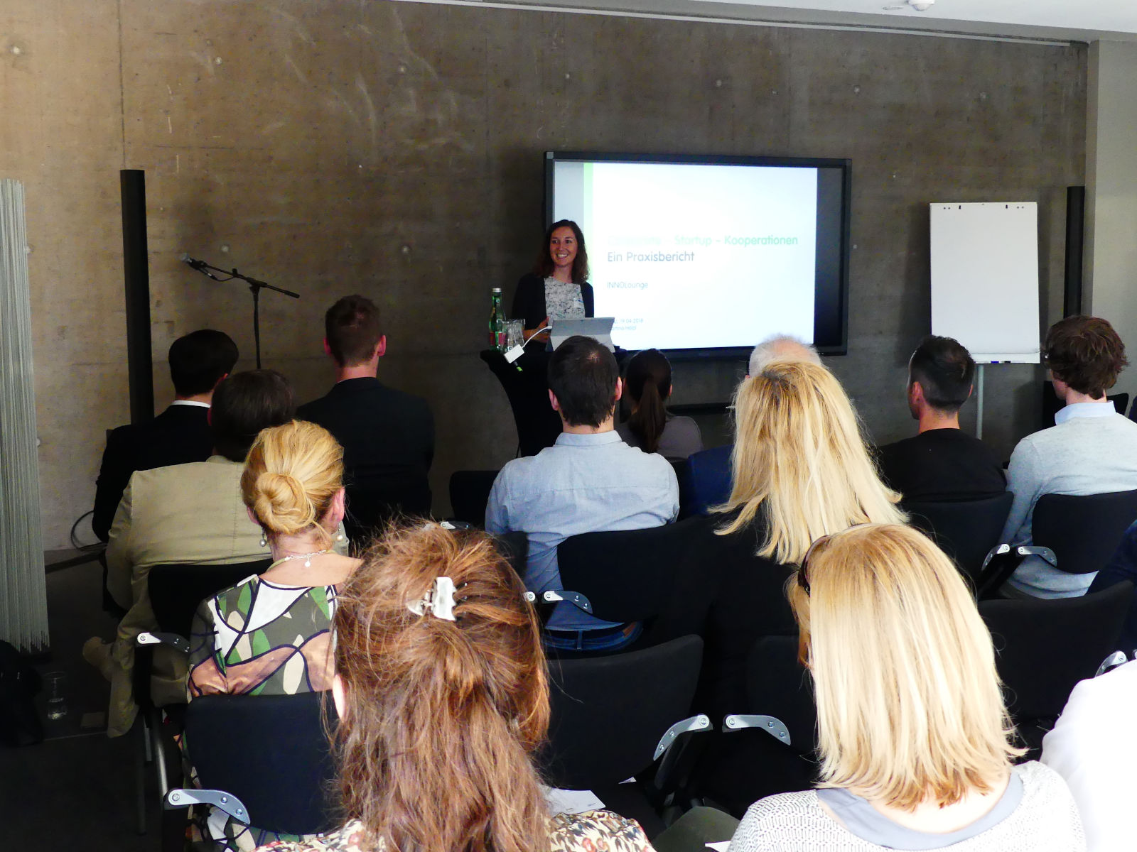 Martina Hölzl vom Next Incubator berichtete im anschließenden Vortrag sehr praxisnah von ihren Erfahrungen mit Start-up Kooperationen. Sie stellte die durchlaufene Lernkurve dar und gab ihre wichtigsten Empfehlungen für eine erfolgreiche Kooperation mit Start-ups an die Teilnehmer weiter.