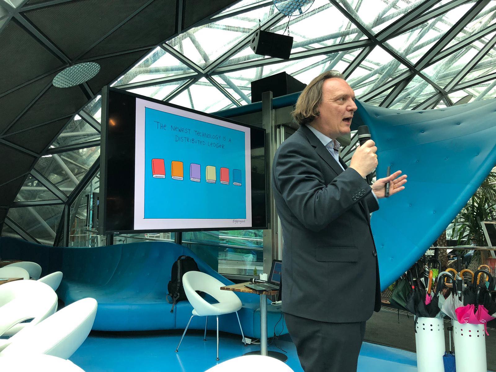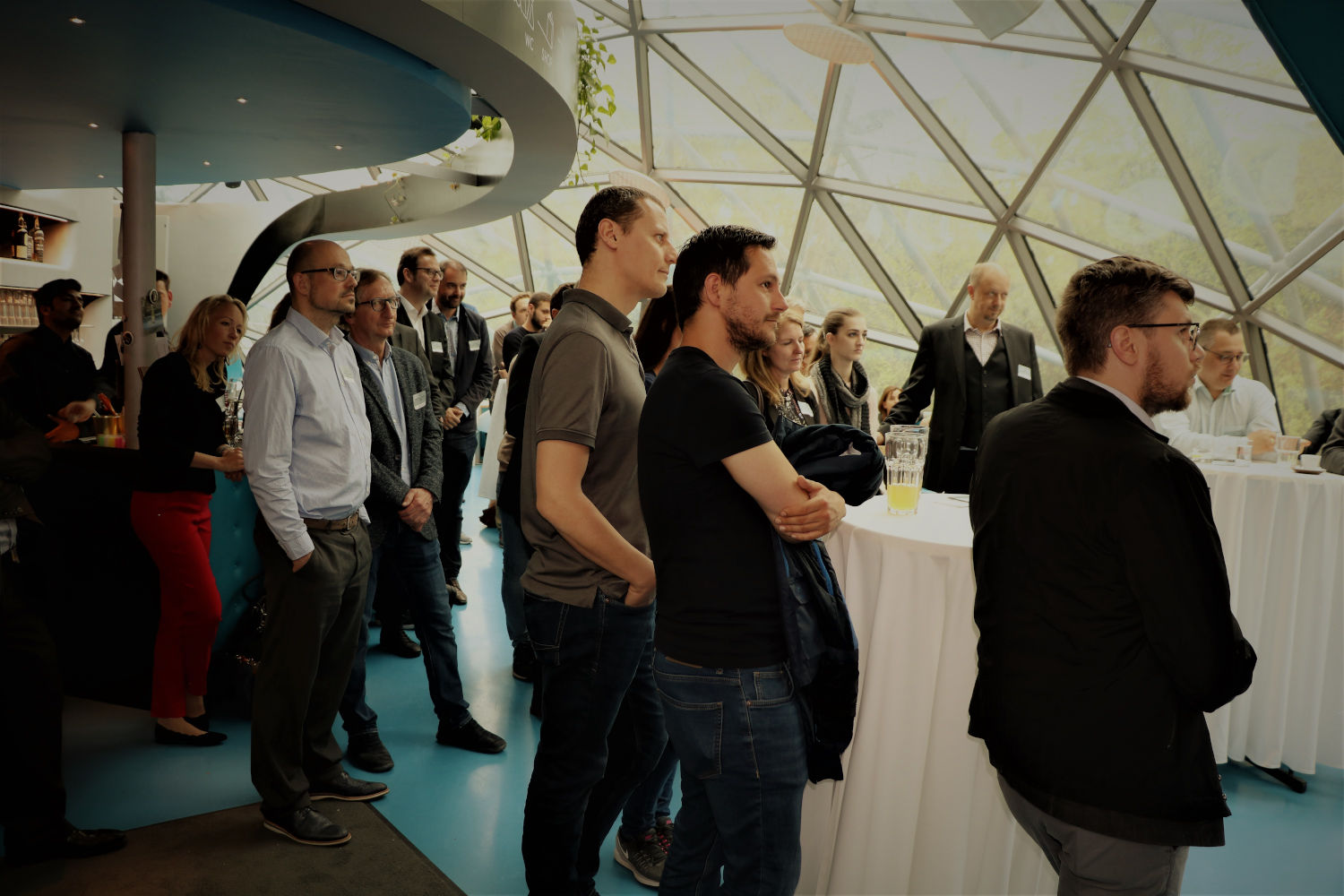 Wie das gelingen kann, zeigte in einem ersten Vortrag Sascha Mundstein (Senior Manager für Digital Solutions & Emerging Technology bei Pfizer), der seine Vision für die Rolle der Blockchain-Technologie im Gesundheitswesen skizzierte und dabei ein Modell präsentierte, das die benötigte Zeit zur Neuentwicklung von Medikamenten dramatisch verkürzen könnte. Einen generalistischeren Ansatz verfolgte Markus Hickl (BDO Consultig) der als Unternehmensberater über seine Erfahrungen zu Innovationsprozessen in Unternehmen sprach. Besonders ging er auf die Herausforderung ein, auf die richtigen Themen zu setzten. Dazu benötigt es auch eine große Portion Kreativität. Wussten Sie zum Beispiel, dass Sony zu den größten japanischen Salatherstellern zählt? Welche Methoden bei Erneuerungsprozessen in Unternehmen umgesetzt werden sollten, um den „Garten Innovation“ zu düngen, stieß bei allen Gästen auf großen Anklang.